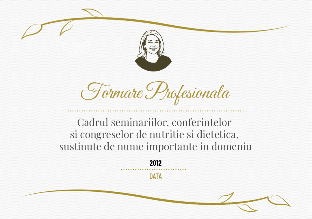 Are licente obtinute atat la Facultatea de medicina generala Carol Davila cat si la Facultatea de nutritie si dietetica a UMF Tg Mures, la care se adauga studii de MASTER in stiintele nitritiei la Universitatea Babes Bolyai din Cluj.